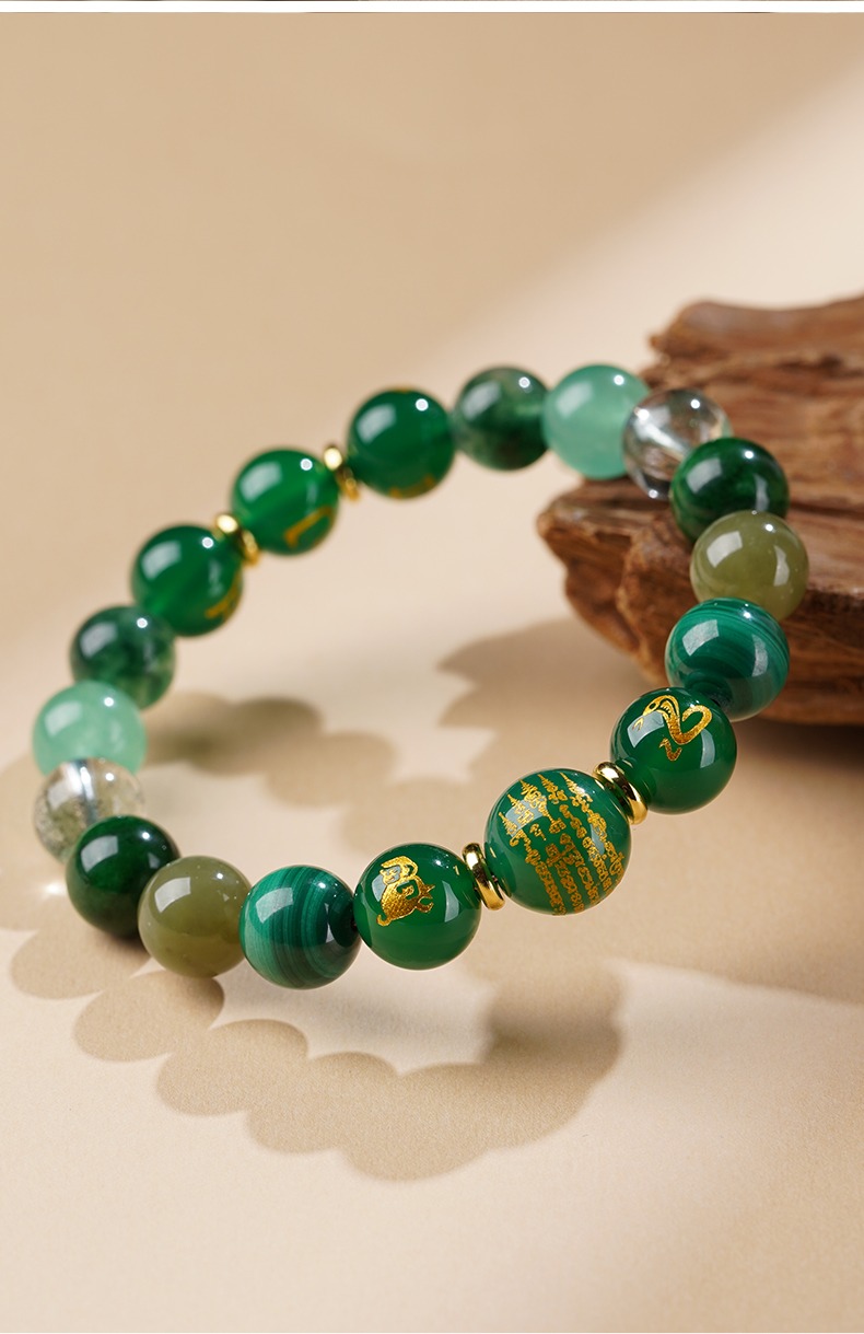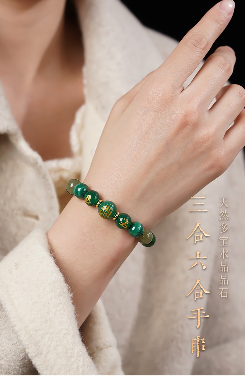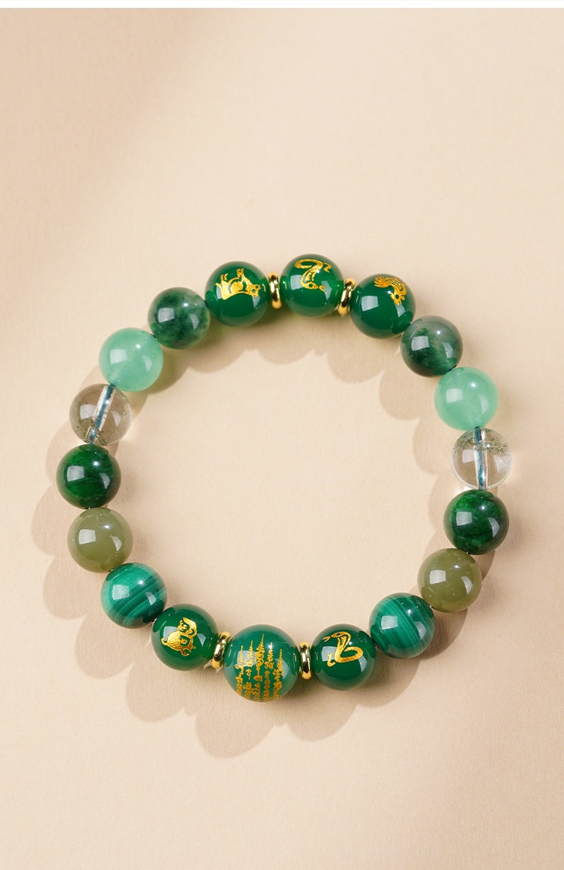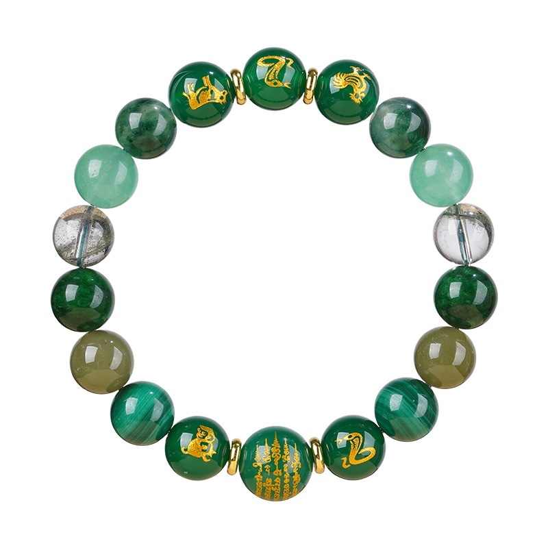 Best selling this month, Beware of villains, Career luck, Featured recommendations, Five Elements Guard, Health protection, Luck needs, zodiac energy, 水- WaterSANHE and LIUHE natural green crystal twelve zodiac signs bracelet
